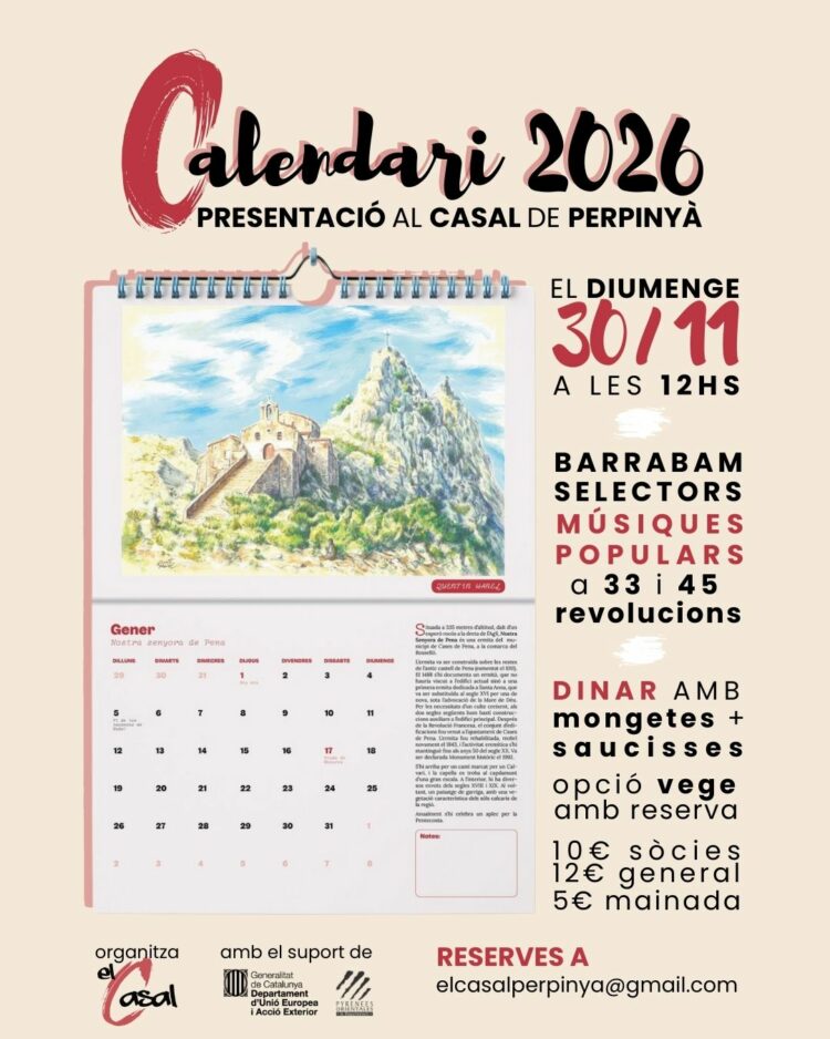 El calendari 2026 del Casal ja ha arribat! Us el presentarem el diumenge 30/11 a partir de les 12hs. La temàtica d’enguany – “Passejades pels llocs emblemàtics de la Catalunya […]