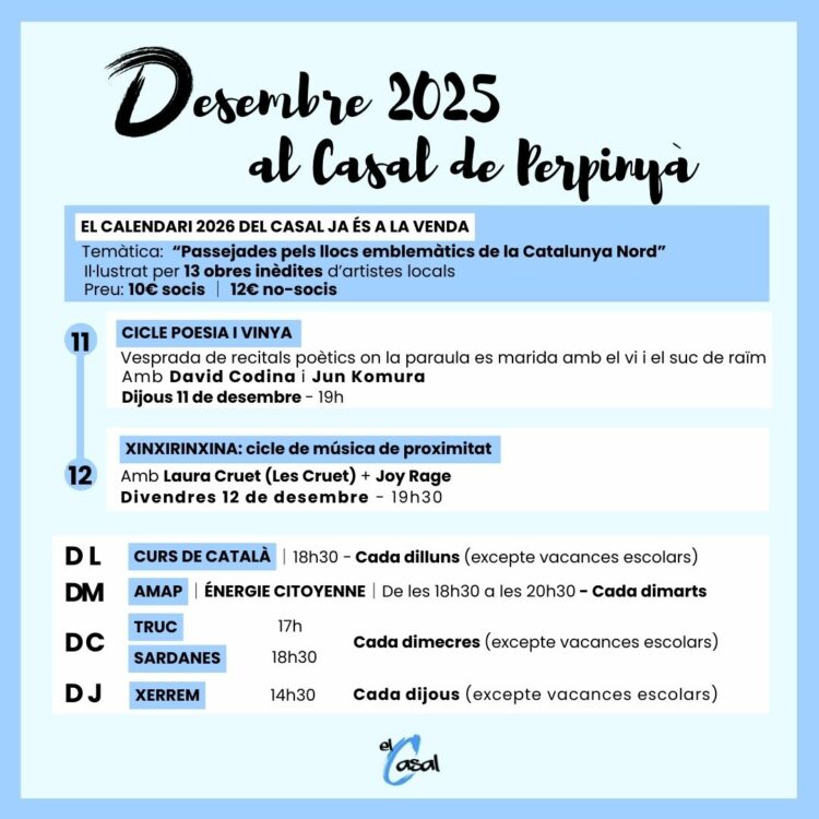 Aquesta tardor, el Casal de Perpinyà torna a acollir el cicle “Poesia i Vinya”, tres vesprades de recitals poètics on la paraula es marida amb el vi i —com a […]